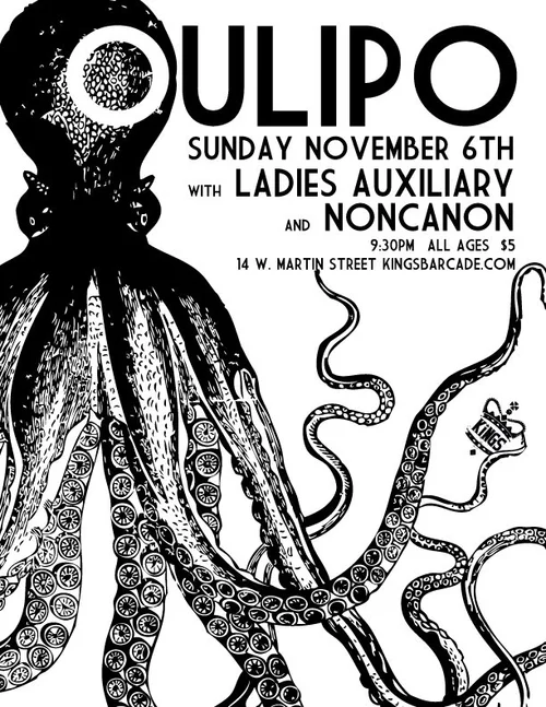 Here are a few examples of posters produced for Kings Barcade, back when they were located at 424 S. McDowell Street. I started producing work for them in the fall of 2003. I created the Kings text logo for poster use, as seen throughout. Sadly, not many examples from this time exist. I lost over a hundred items to file corruption.