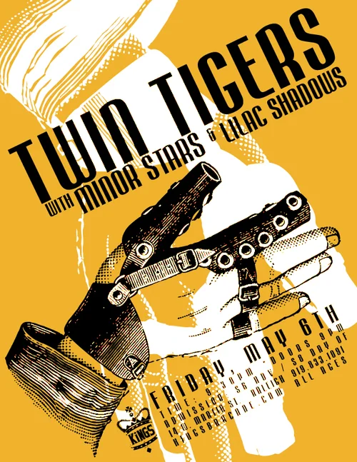 This gallery highlights my favorite posters produced for Kings from 2014 through 2015. During this time, the advertising concentrated on use of pre-fab artwork from promoters (band pics, album covers, etc). The opportunities to create more illustration or collage based flyers became less frequent. In turn, I was able to focus more on text treatments.