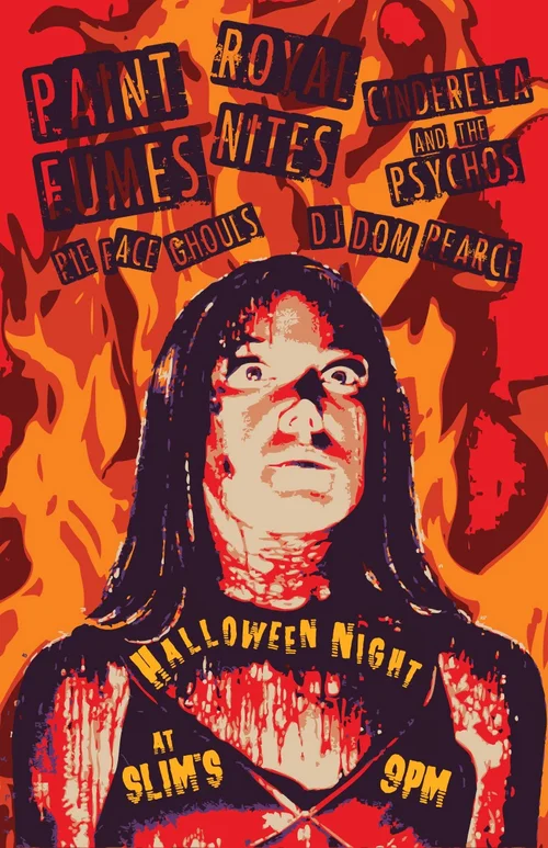 Here are selected offerings from 2011 to 2014. This collection features posters for Brewmasters, Slims, The Maywood, Nice Price Book, Reggies and The Cave. Most of these posters showcase metal, hard rock and punk music. Of course, there are pieces that don't fall under this umbrella. See if you can tell which ones they are!